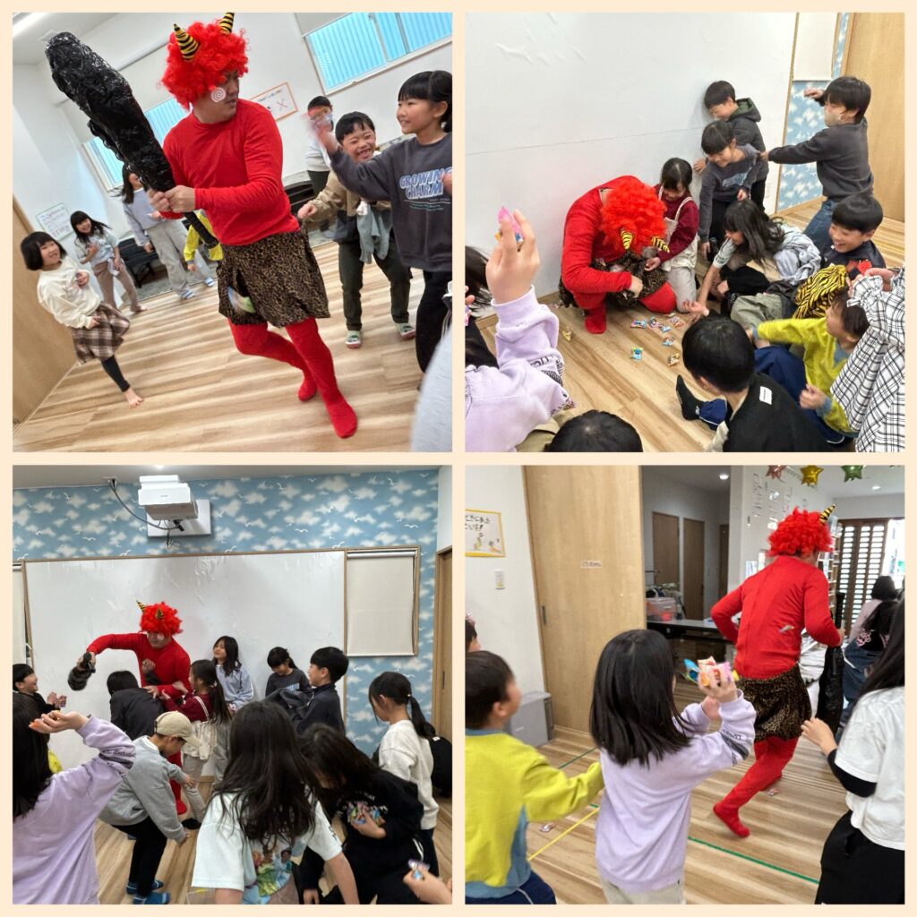 学童に赤鬼さんが遊びに来ました❣️ 待ち構えていた子どもたち(^-^)v