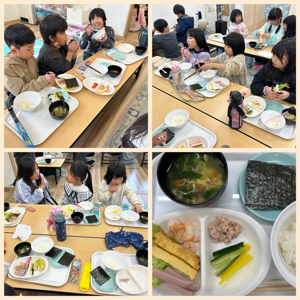 給食で、手巻き寿司をお腹いっぱいに食べた子どもたちでした❣️