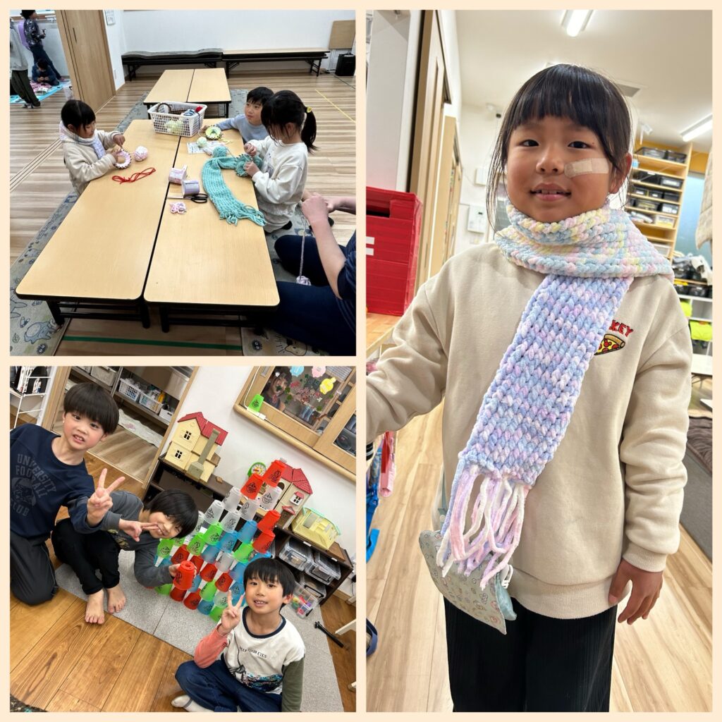 編み物は、去年から編んでいるお友だちはマフラーが完成したり、あと少しのお友だちもたくさんいます^_−☆