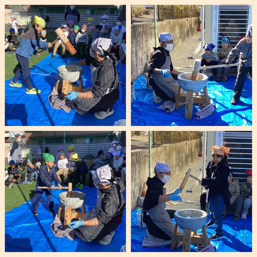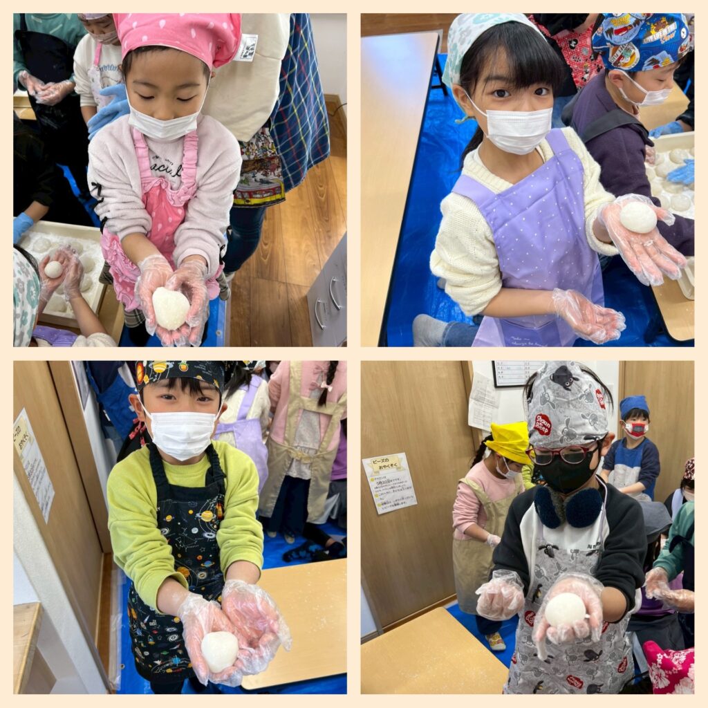初めておもちを丸める子もいましたが、上手に丸く出来とても嬉しそうでしたよ❣️